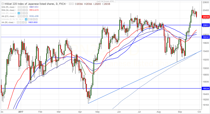 - Nikkei his consolidating in narrow range between 201497 and 20234 for the past four trading session. The index broken low of 20234 and declined till 20203. Nikkei has formed a temporary top around 20497 and any further bullishness can be seen only above that level.It is currently trading around 20263 0.51% lower.