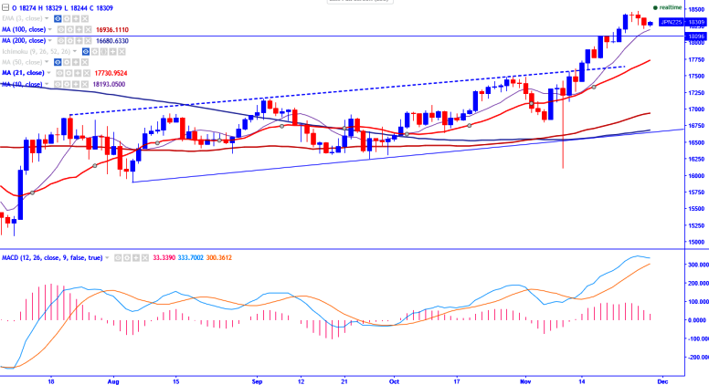 •Technically index is slightly bullish as long as support 18150 (10- day MA) holds.