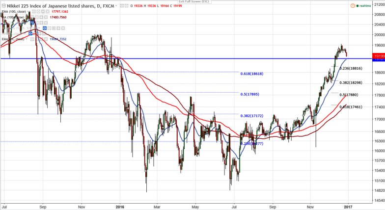 Nikkei225 has declined slightly below 19000 psychological level and recovered slightly from that level. It is currently trading around 19181 0.66% higher.