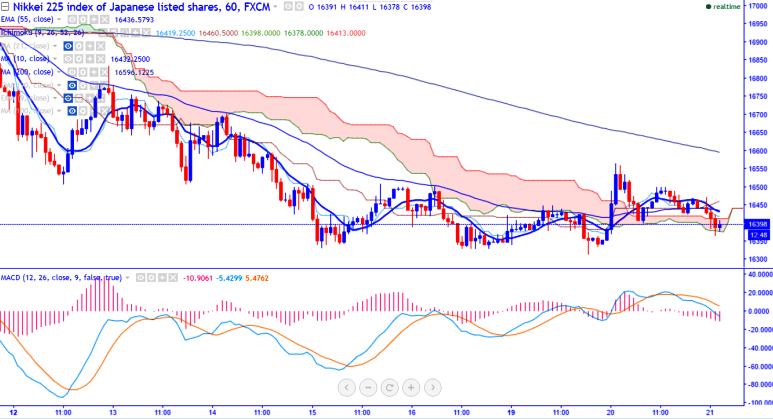 - The index is trading slightly below Tenken-Sen (16423),kijun-sen (16455) and also below 55-H EMA. So it should break above 200- HMA for further bullishness.