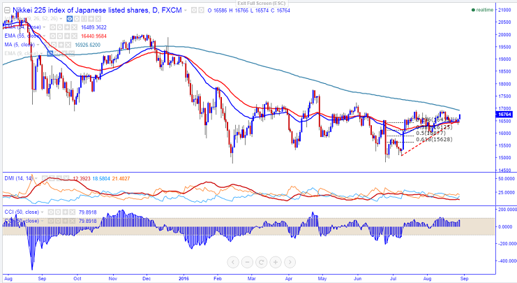 - The index is facing resistance around 16800 and any break above will take the nikkei to next level 16930. Any close above 17000 confirms further bullishness 15500/15300.