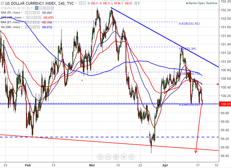 - DXY has shown a mild jump till 100.61 and started to decline from that level. The index broken major support 100 and declined till 99.96 at the time of writing. It is currently trading around 100.
