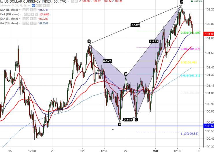 - U.S. Dollar index has jumped till 102.26 after breaking minor resistance 102.06.It is currently trading around 101.93.