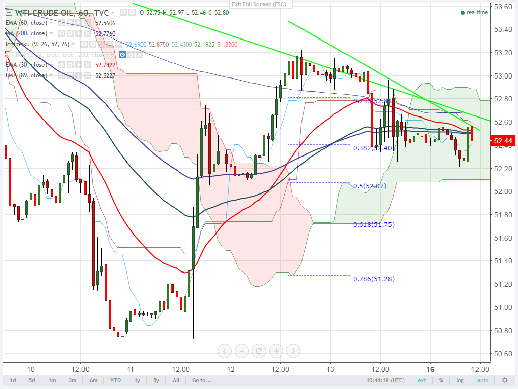 - US oil recovered slightly after making a low of $52.13at the time of writing. It is currently trading around $52.25.