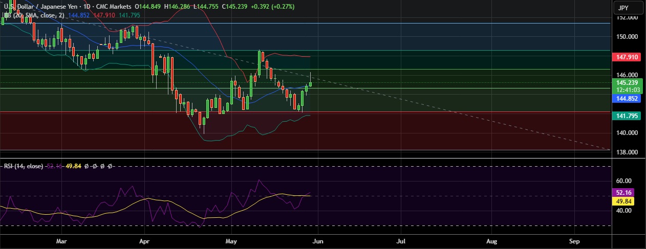 Recommendation: Good to sell around 145.50 with stop loss of 146.40 and target price of 144.00