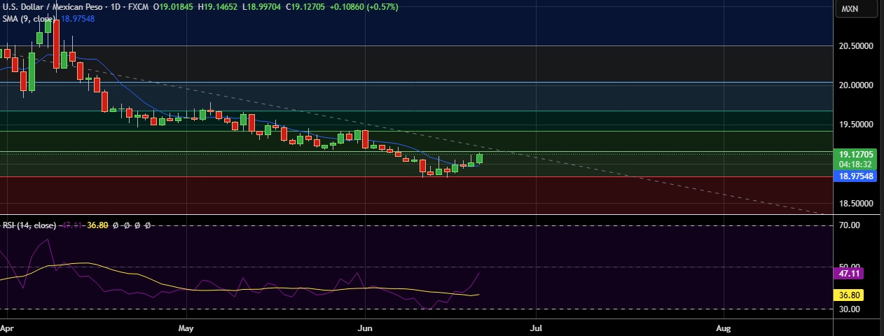 • USD/MXN strengthened on Friday as the escalating conflict between Iran and Israel and a drop in crude prices weighed on the Mexican peso.