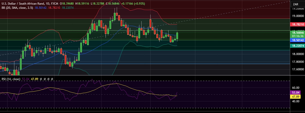 • At GMT 14:43 the pair was trading up 0.97 percent at 18.569.