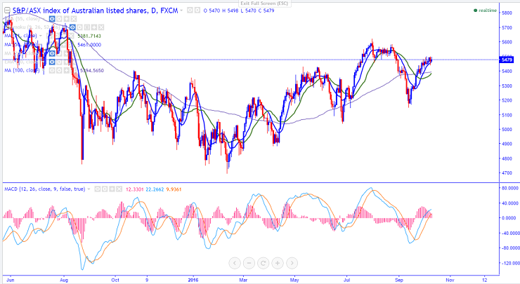 - ASX200 is trading well above Tenken-Sen (5437) and Kijun-Sen (5327) in the daily chart.But it should break above 5502 for further bullishness.