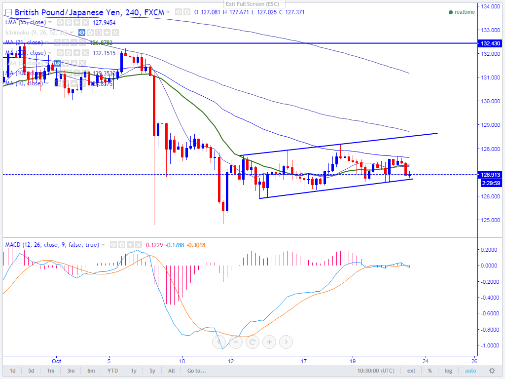 - Major support - 126.60 (trend line joining 125.98 and 126.26).