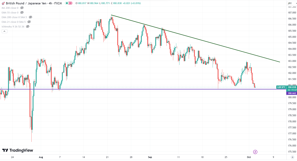 GBPJPY lost its shine on board-based US dollar buying. It hit a low of 180.77 and is currently trading at around 180.88.