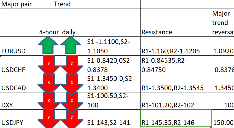 Major pair levels and bias summary