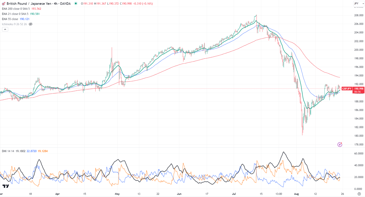 GBPJPY showed a minor pullback despite hawkish BOJ comments. It hit a low of 190.32 yesterday and is currently trading at around 191.02.