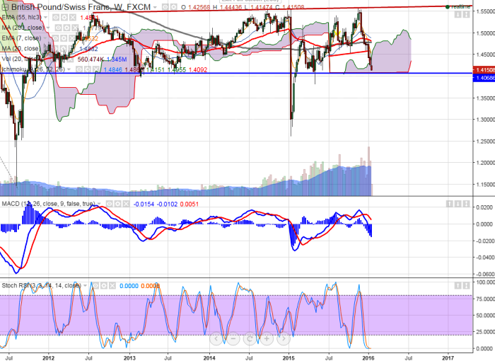 - GBP/CHF has reached 6 month low at 1.4147 and is currently trading around 1.4156.
