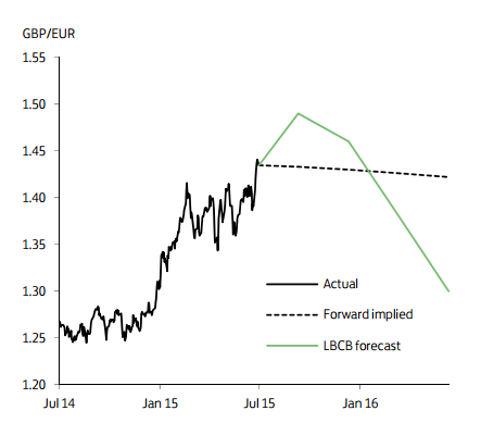 GBP/EUR has recently hit an 8-year high above 1.44. The combination of more hawkish UK monetary policy comments and ongoing uncertainty about Greece's prospects has fuelled the rally. The break higher opens the way for a move up towards 1.50 over the coming months, given the diverging policy outlooks in the UK and the euro area and the likelihood that Greek uncertainty continues to impact euro sentiment.