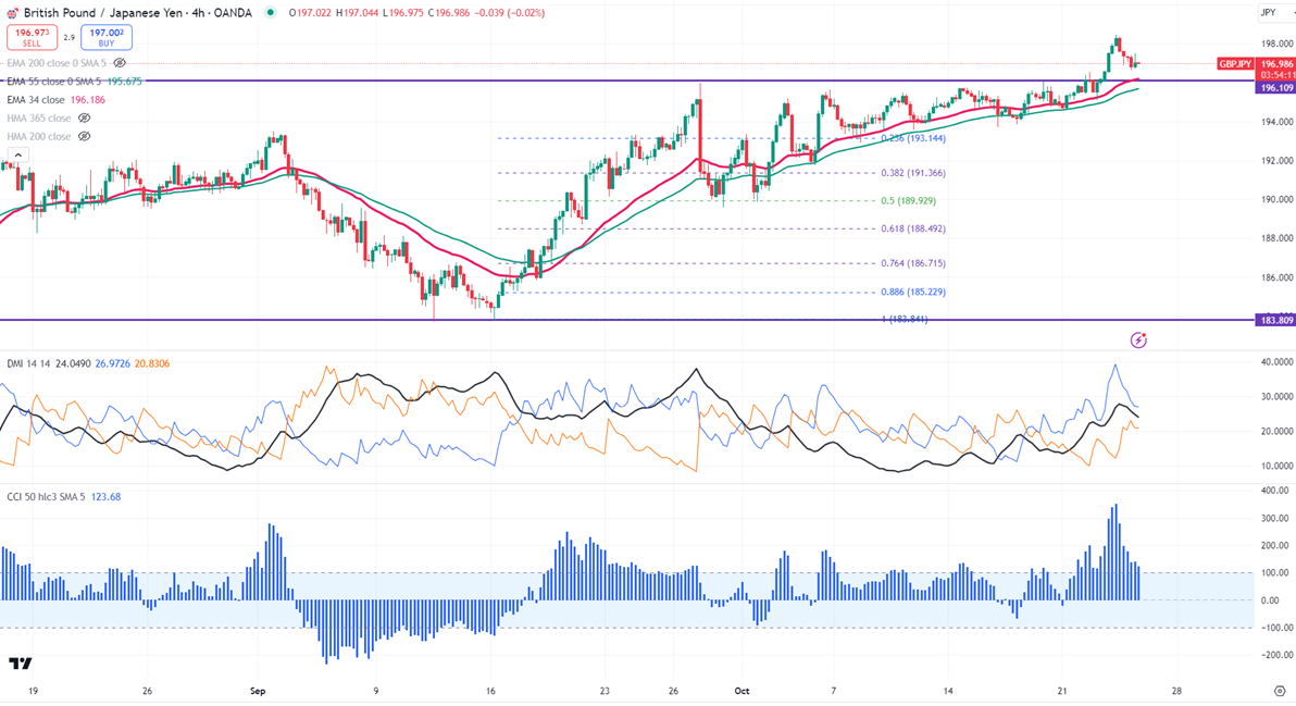 It is recommended to consider buying on dips around 196 with a stop loss around 195.40, targeting profit levels of 197.37 or 198.