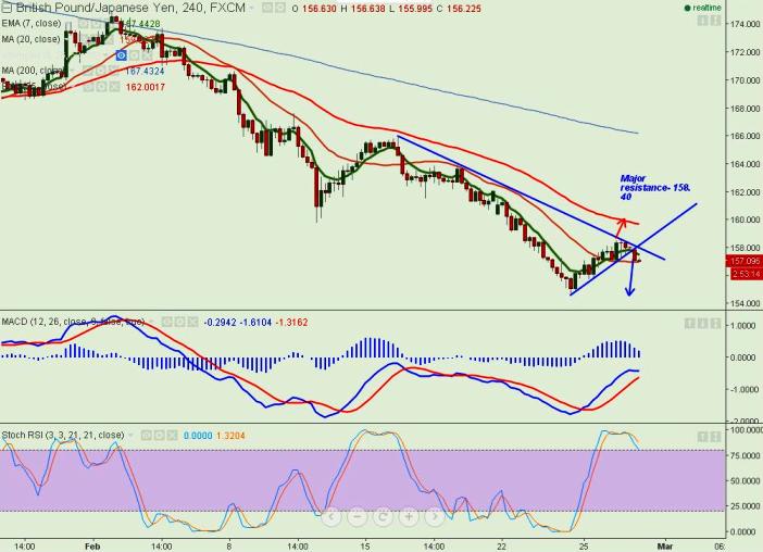 - On the higher side any break above 158.50 will take the pair to next level till 159.25/160.