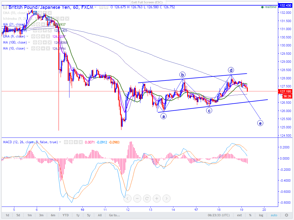 - GBP/JPY started to decline after jumping till 128.16 level. It is currently trading around 127.32.