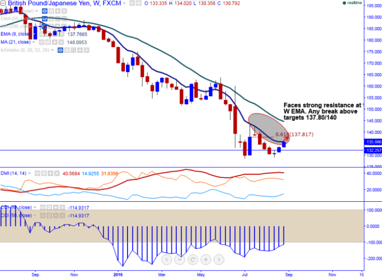 - The pair has broken major resistance 135.80 (9 – W EMA) today and jumped till 135.926 at the time of writing. It is currently trading at 135.89.