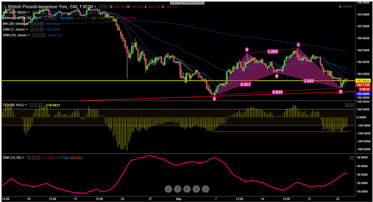 - GBP/JPY has made a low of 181.61 and slightly recovered from that level. It is currently trading at 182.96.