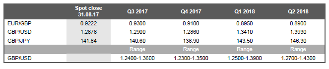 Credit flow data also points to a potential pick-up in investment activity. Lending to non-financial corporations jumped to GBP 8.1bn in July, the strongest monthly increase since the series began in 2011. Much of the flow of credit (GBP 5.6bn) was to the manufacturing sector pointing to the positive export outlook fuelling loans to finance investment to expand businesses. The pound also suffered in August to increased signs of gridlock in Brexit negotiations. Tensions have certainly escalated with Michel Barnier calling for the UK to get serious while Brexit Secretary Davis called on the EU to be more flexible. This gridlock could continue to weigh on pound sentiment. These concerns resulted in little attention being given to the Labour Party shift in Brexit policy. The key opposition party is now formally supporting continued Single Market access during a long transition phase. This means only a small number of Conservatives would be required to reach a majority in parliament for this transition state.