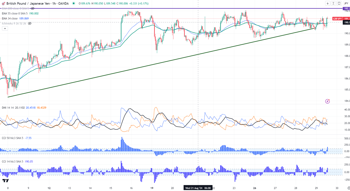 The pair is trading above 34- and 55 EMA in the hourly chart.