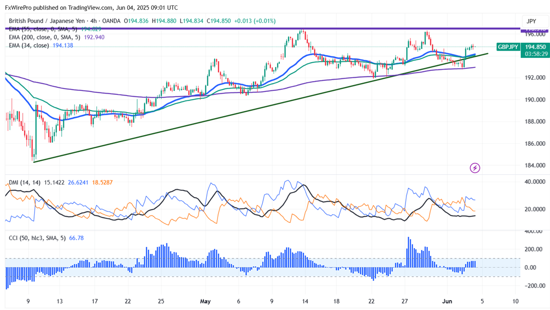 GBPJPY recovered sharply as demand for safe-haven assets decreased. It hit an intraday high of 195.09 and is currently trading around 194.93.