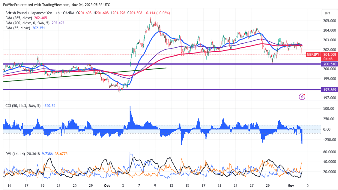 Major Support- 201.30. Any breach below will drag the pair down 200.50/200/199.30/198.34/197.40.