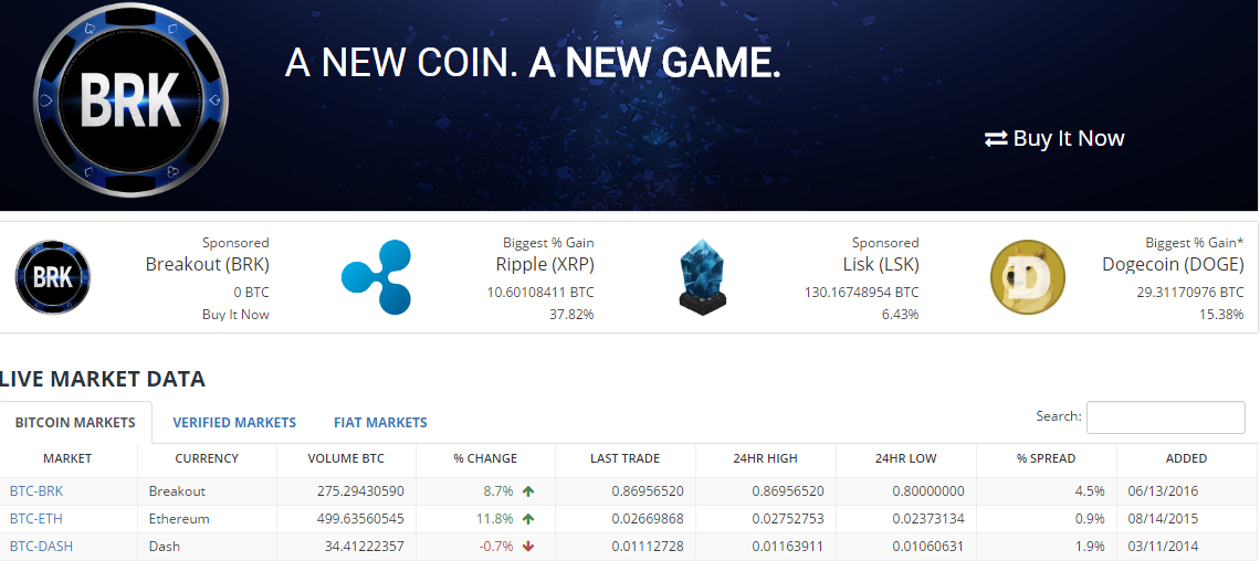 Breakout Coin, the gaming industry payment coin, commenced its public coinsale around 15 cents on Monday and sold more than $172,000 (249 BTC) in the first hour alone. The sale is being hosted by the leading cryptocurrency exchange Bittrex.