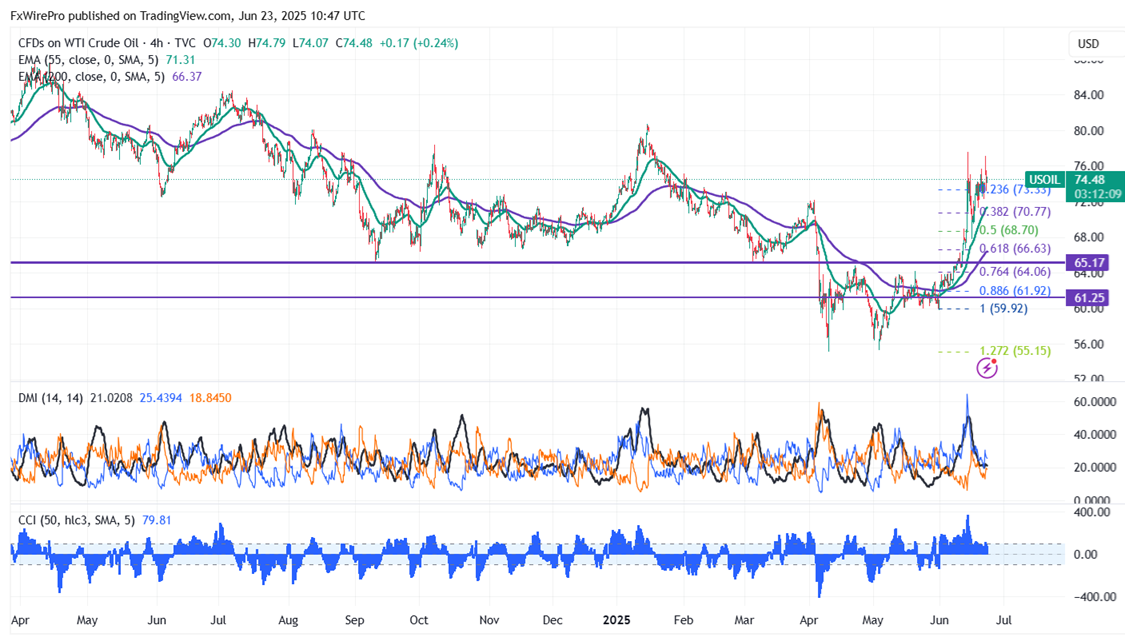 The near-term resistance is around $75; any breach above this level could push prices higher to /$76.07/$77.10/$78. On the downside, immediate support is at $74 violation below targets $73/$72.30/$70.65/$69.60/$68.60/$66.65/$65.