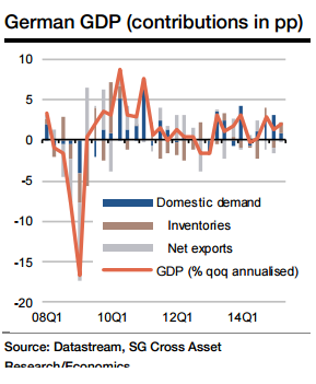 German GDP is expected to have risen by 0.5% qoq in Q2, up from the weaker-than-expected 0.3% in Q1, on the back of robust domestic demand. While both stocks and net exports contributed negatively in Q1, the underlying growth in domestic demand was actually very impressive. With reduced headwinds from net exports and stocks, real GDP is not expected to disappoint this time.