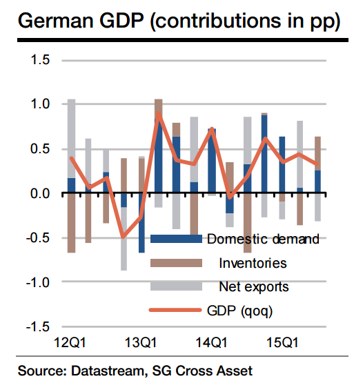 In Q3, German GDP grew by 0.32% qoq, according to the preliminary release, which compared with 0.44% in Q2 and was lower than the 0.36% forecast. This week's release will provide the first breakdown of growth, which should confirm that domestic demand is back as the key driver of growth, after net exports were the dominant driver in Q2.