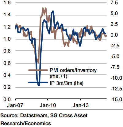 "A key reason for the weak momentum in the industry is probably the still-weak global demand and trade. Survey indicators point to a still mixed outlook for the start of Q3", says Societe Generale.