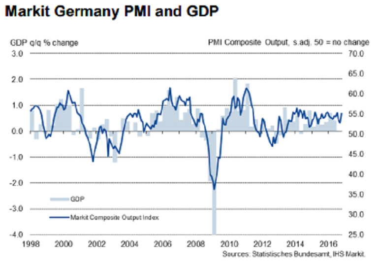 Germany’s activity sector output rebounded during the month of October, following solid co-operation from private sector output, with the country’s composite Purchasing Managers’ Index (PMI) touching a 3-month high during the period.