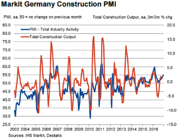 Growth of Germany’s construction sector gathered speed in December, with activity rising to the greatest extent in nine months. Higher new work was a key factor behind the expansion – the latest increase was the second-quickest on record.