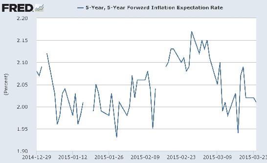 - The 10-year breakeven in the US has risen from about 1.5% in January to 1.6% in mid-march and now hovering above 1.8%. The chart, prepared in FRED dashboard presents another measure of inflation rate 5y5y inflation expectation rate that is firmly hovering above 2% in spite of dovish comments from FED officials.