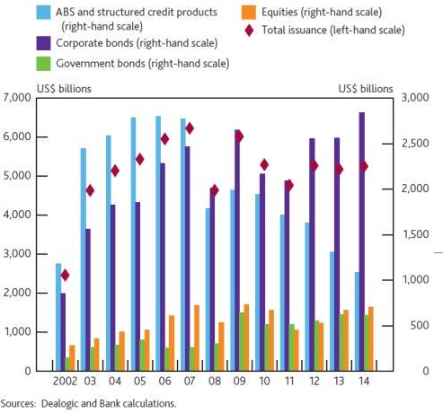 - Recent data compiled by Dealogic shows that Global Investment banks helped in issuing securities in the tune of $ 5.2 trillion in 2014, close to pre-crisis level.