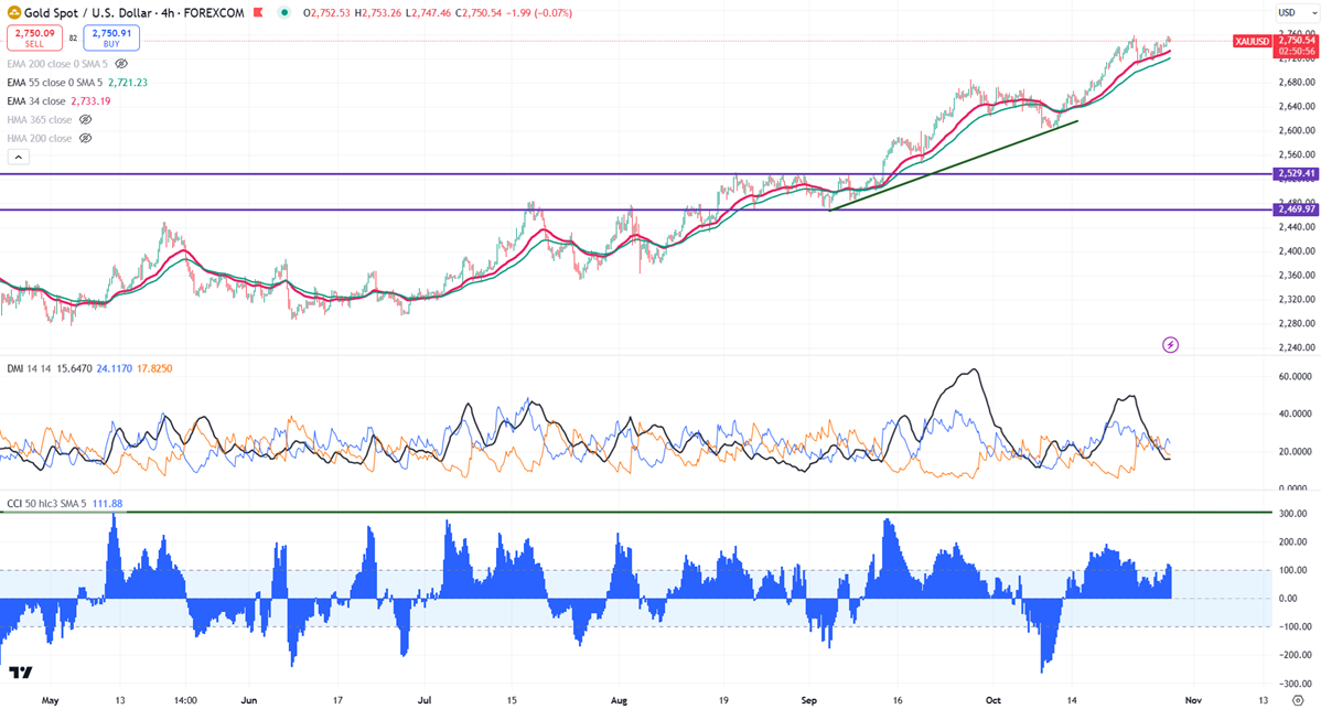 Gold trades higher on safe-haven demand. It hits a high of $2757 at the time of writing and now sitting around $2,750.47.