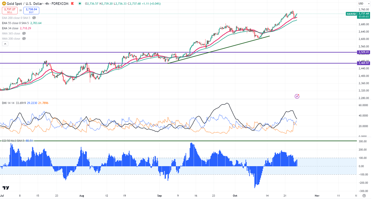 Additionally, recent rate cuts by central banks like the ECB and BOC to stimulate the global economy may boost the appeal for safe-haven assets like gold. The CME FedWatch Tool now indicates a 93.1% chance of a 25 basis point interest rate cut in November, up from 87.7% last week.
