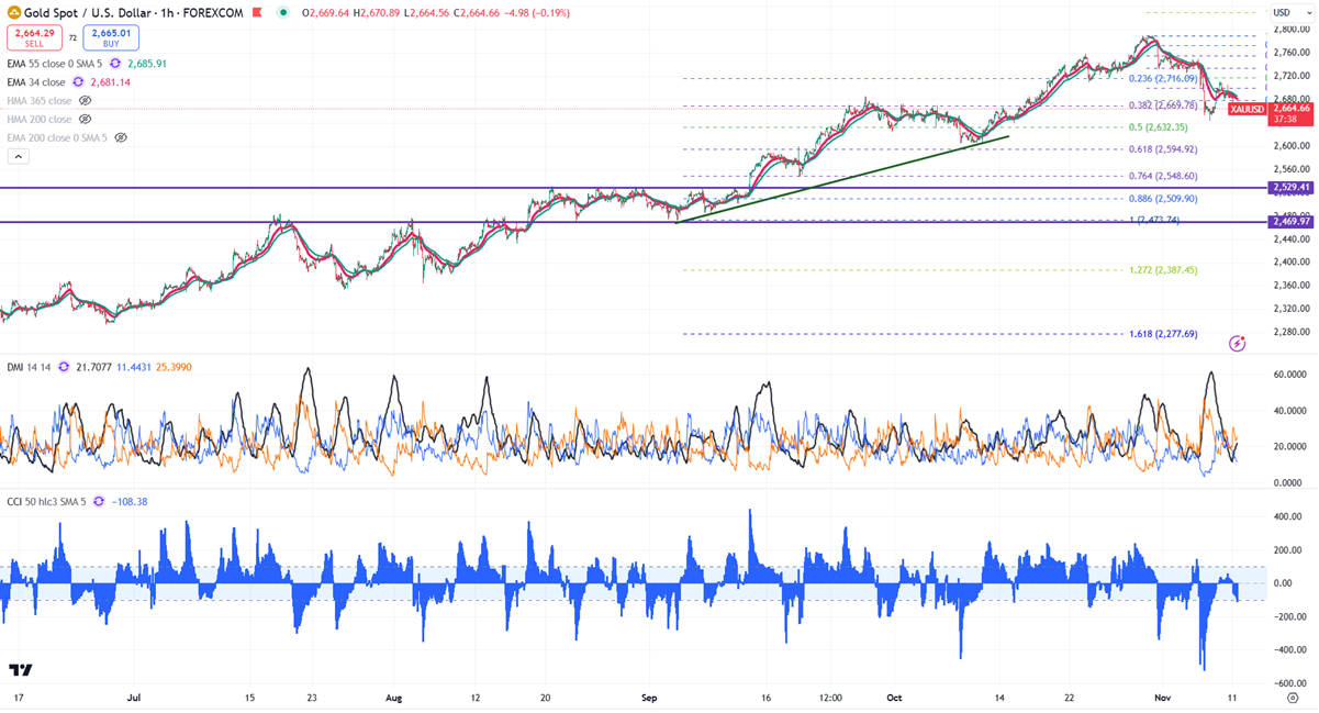 Gold prices are weak because the US dollar is strong, and US Treasury yields are going up. Gold recently dropped to a low of $2,643 but is now around $2,669.