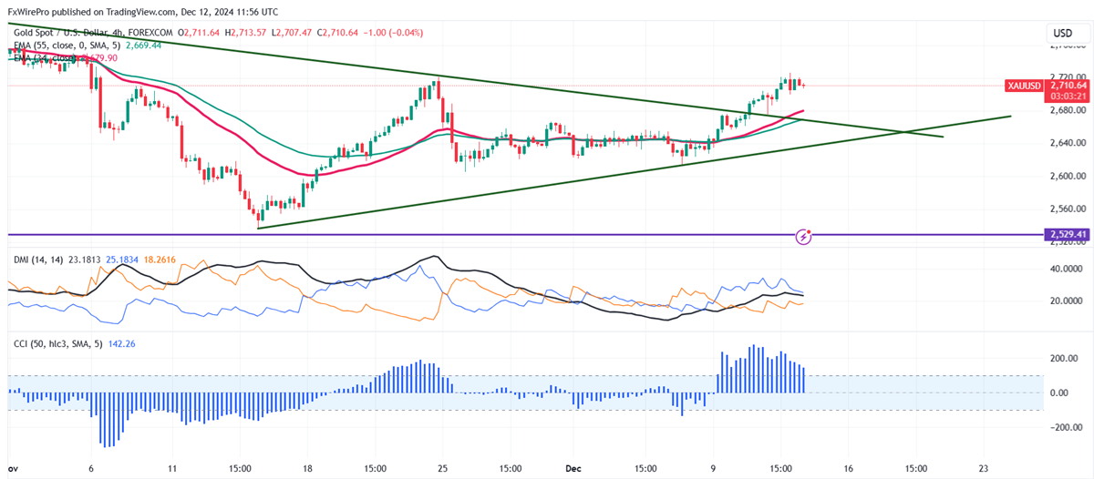 Gold prices held above $2700 as US CPI came in line with market expectations. It hit a high of $2,726 and currently trading around $2716