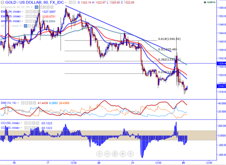 - On the higher side, for the intraday gold should break above $1328 (hourly Kijun-Sen) for jump till $1337 (200 HMA)/$1340 (61.8% retracement of $1356.09 and $1314.87).