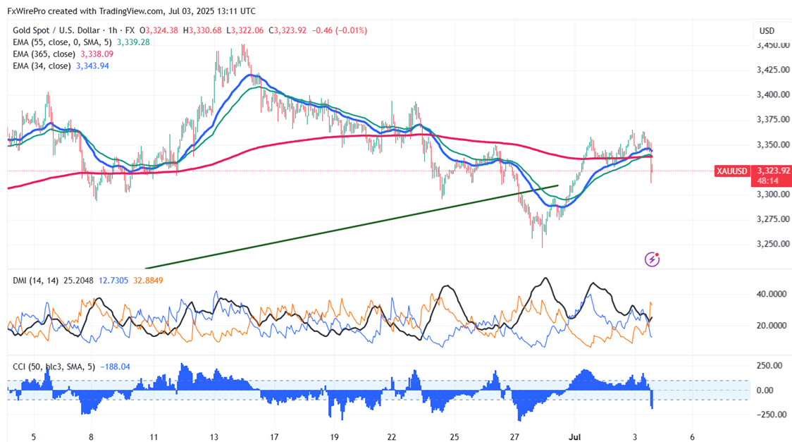 Gold lost its shine after upbeat US jobs data. It hits an intraday low of $3311 and is currently trading around $3323.