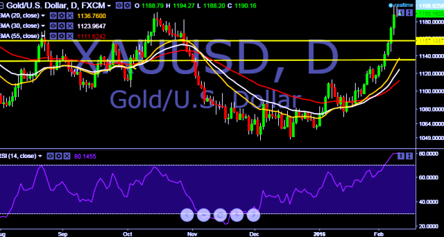 We maintain our bullish bias on XAU/USD. We prefer to take long position on XAU/USD around $1190, stop loss $1175 and target $1205 levels.