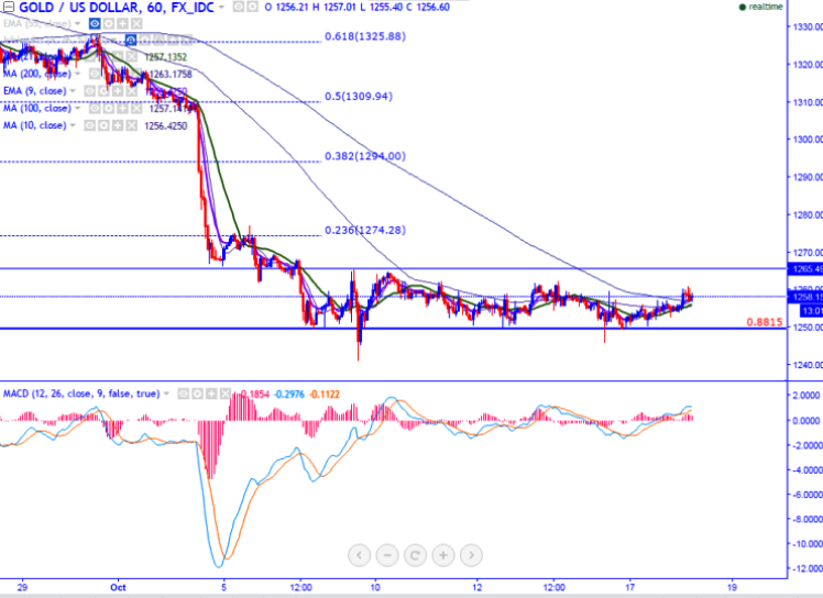 - Gold jumped slightly once again after declining till $1250 level. It is currently trading around $1258.58.