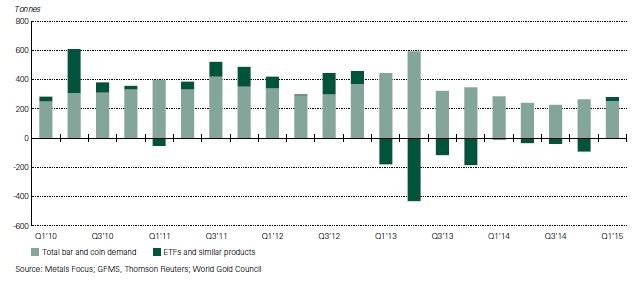 Gold's massive fall since 2011, has flown investors out of the gold market, however latest demand analysis from world gold council (WGC) shows Gold is gaining back some of its investment appeal in 2015.