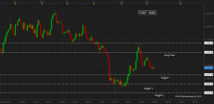 - Sell Gold at current price ($1120/troy ounce) with stop around $1150/ troy ounce area and target around $1072 area.