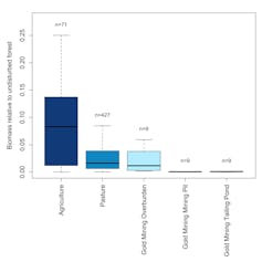 We found that the recovery process is primarily dependent on the availability of nitrogen, a critical component that trees need in order to grow, and less on the level of mercury contamination. Nitrogen is found in the topsoil which is stripped away during the mining process, and was significantly lacking in mining pits and tailing ponds, making it difficult for forests to re-establish themselves. On the overburden, however, where there was more nitrogen left in the soil, recovery rates were similar to abandoned pasture or agriculture.