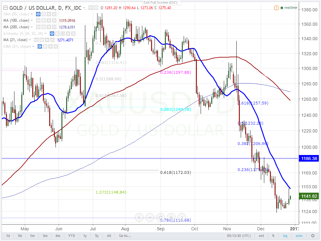Gold upside capped by 21- day MA, bullishness only above that level.