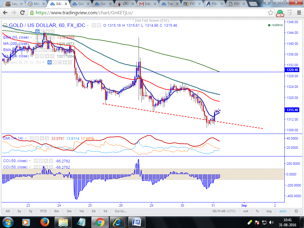 - The yellow metal has declined sharply till $1308.80 level yesterday. It is currently trading around $1315.45.