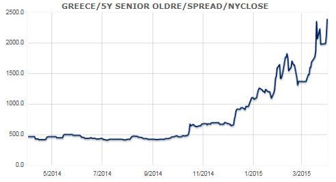 Investors and traders continue to pose doubts on Greece and pushed credit default swap premium for 5 year debt close to 25%. Chart courtesy Soberlook.